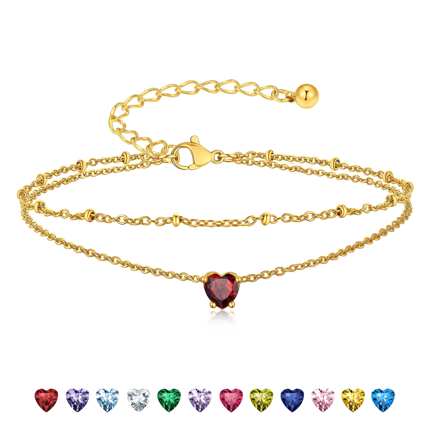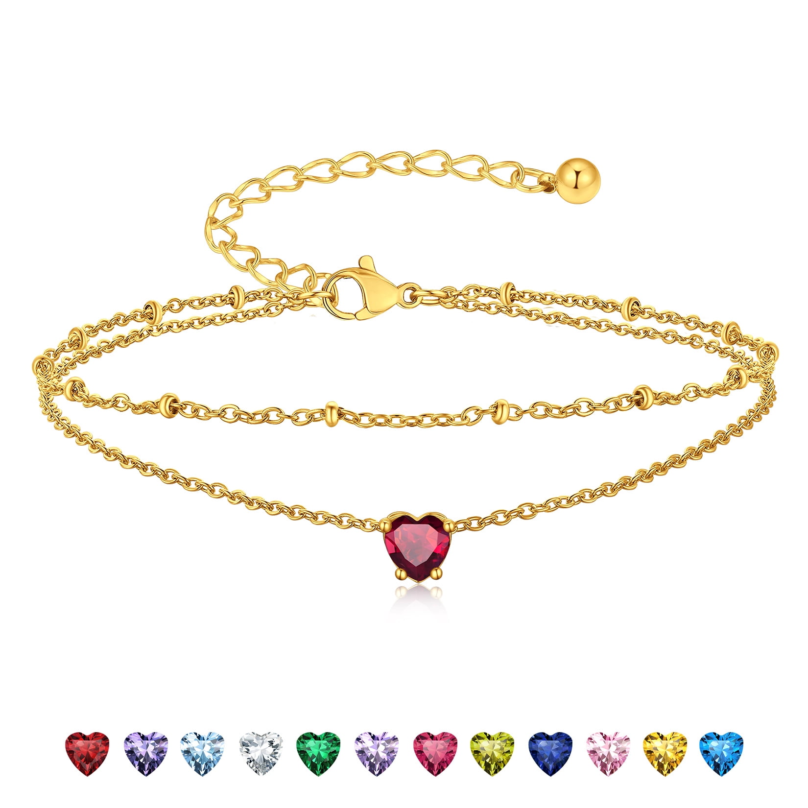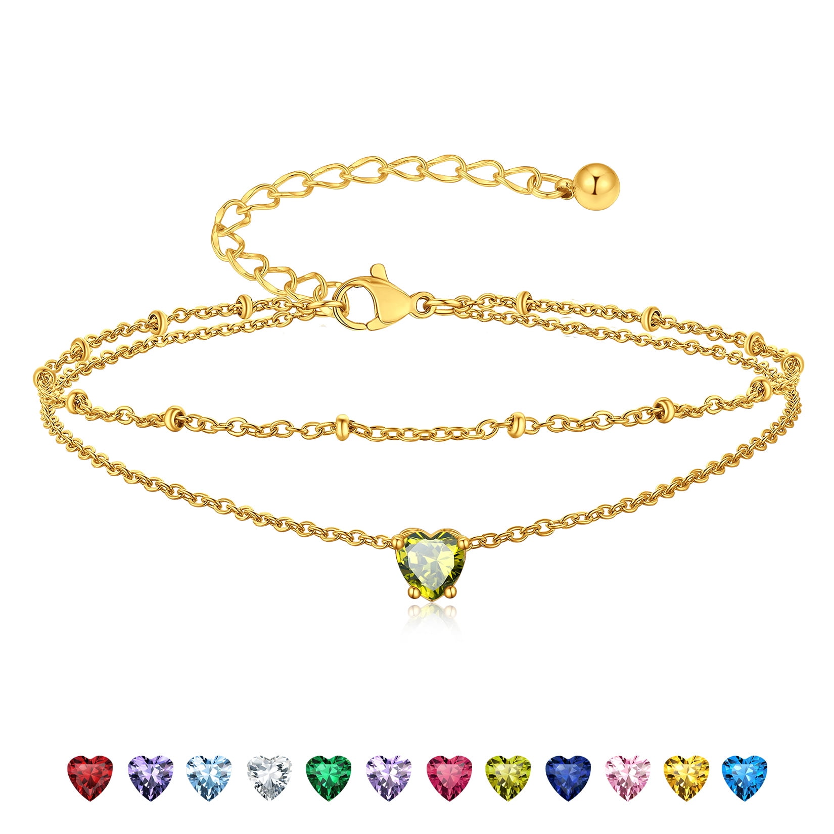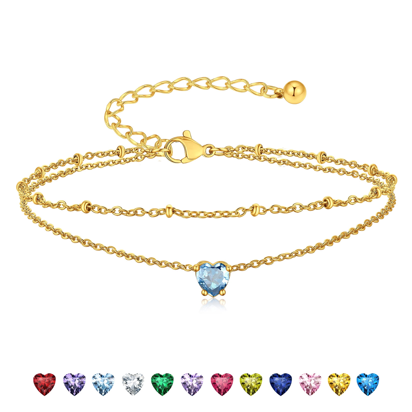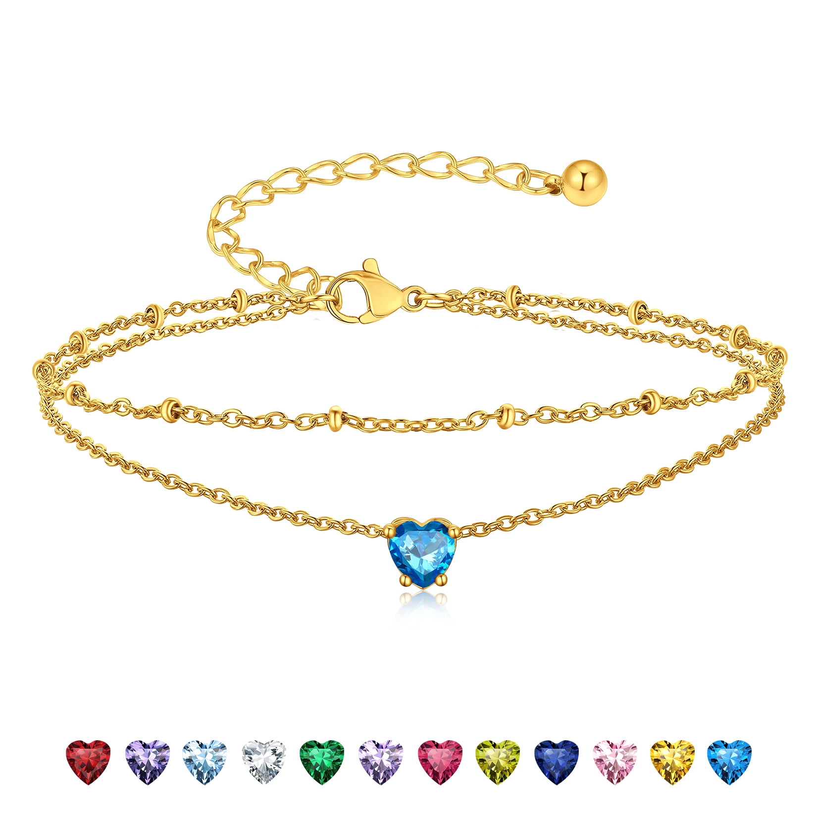 BIRTHSTONE WOMEN ANKLETS -- Dainty minimalist birthstone charm ankle bracelets, simple cute summer jewelry, these women's anklets offer great comfort when worn to parties by the shore.
