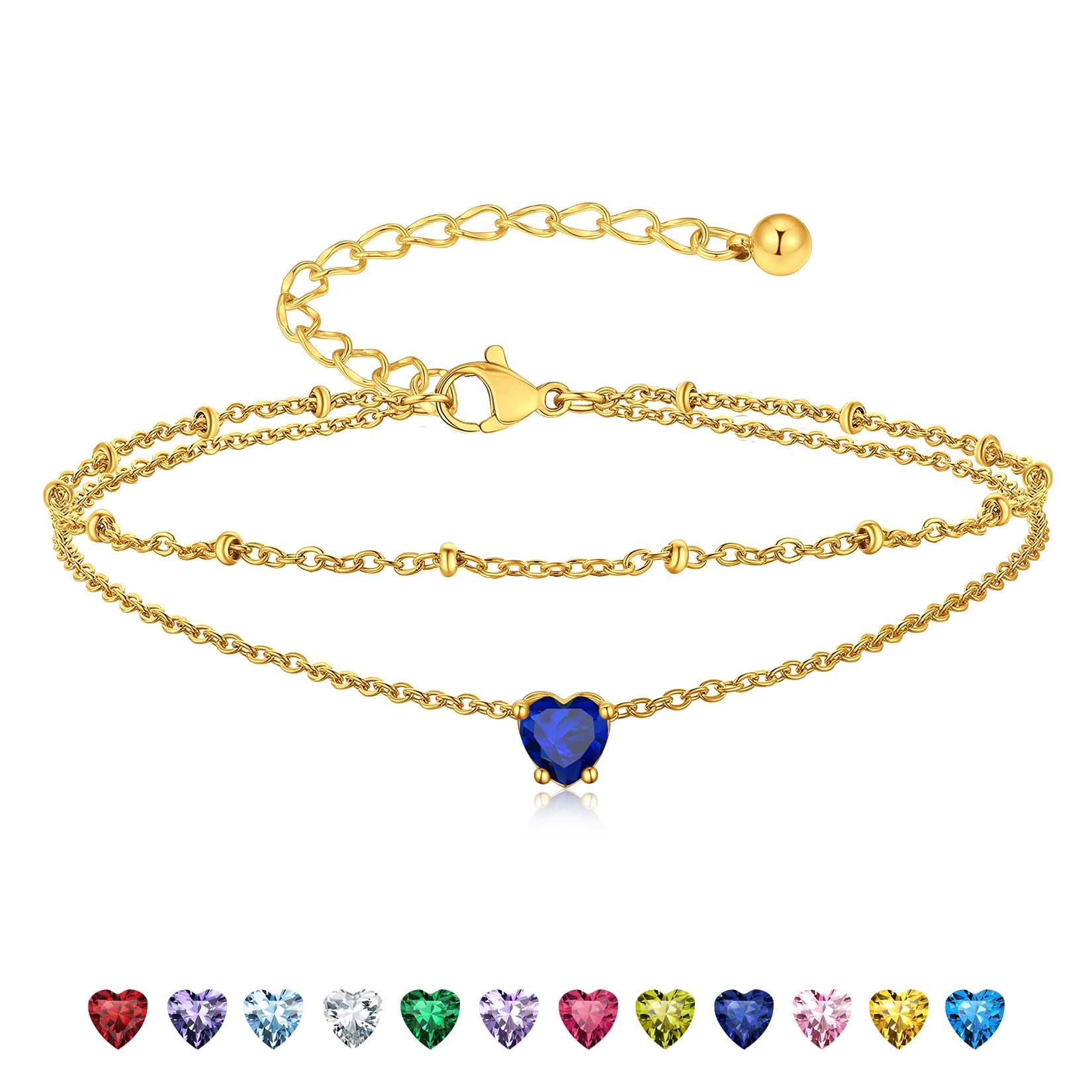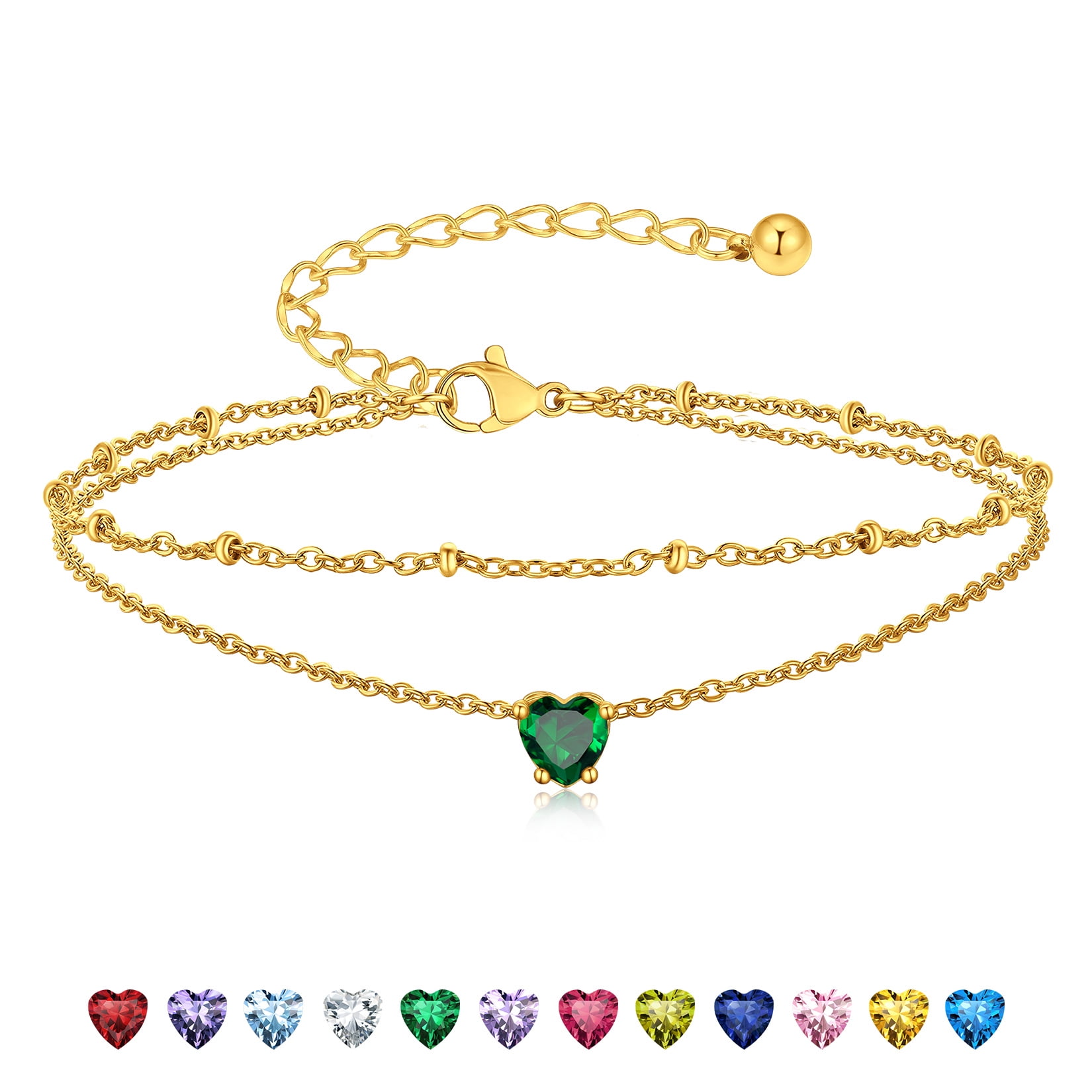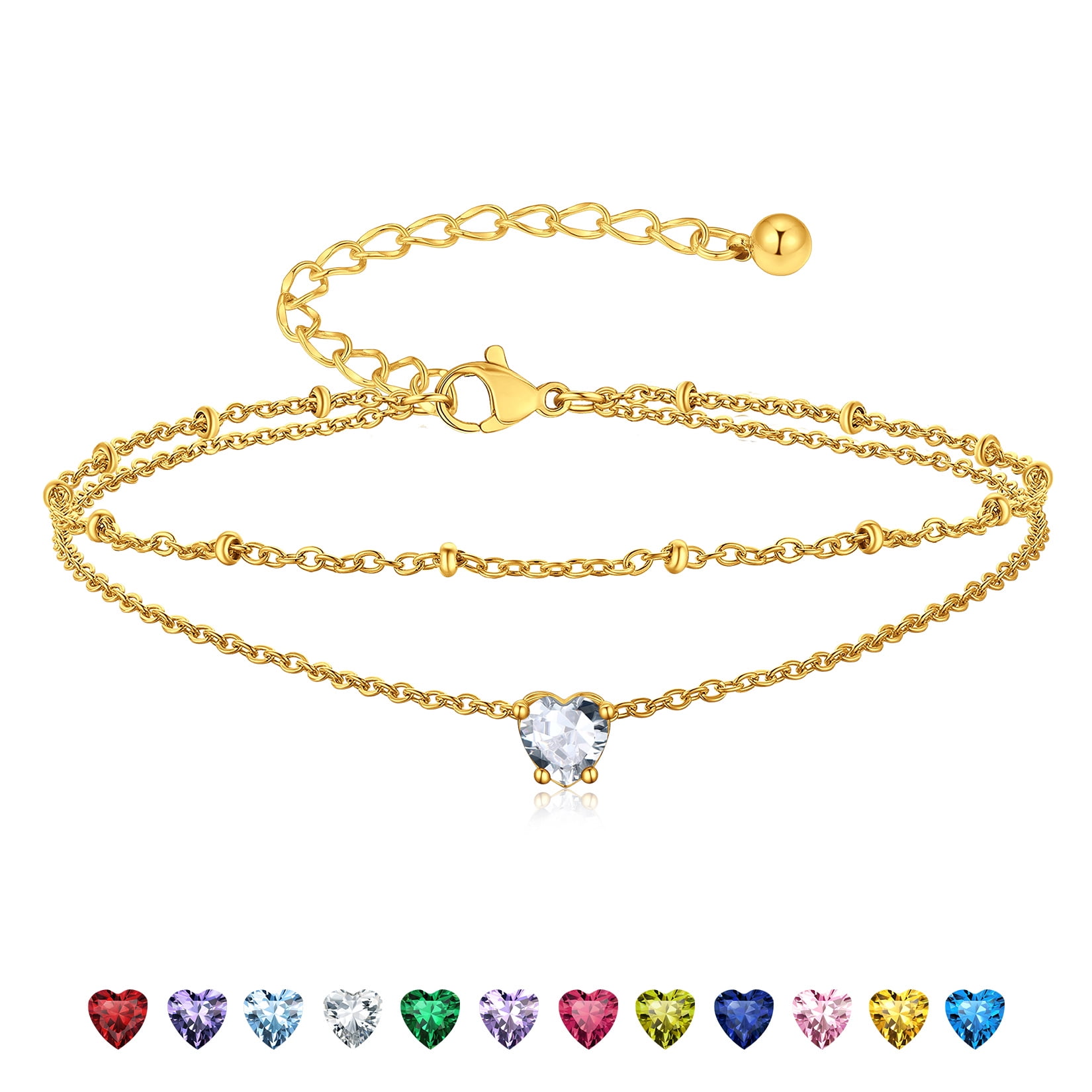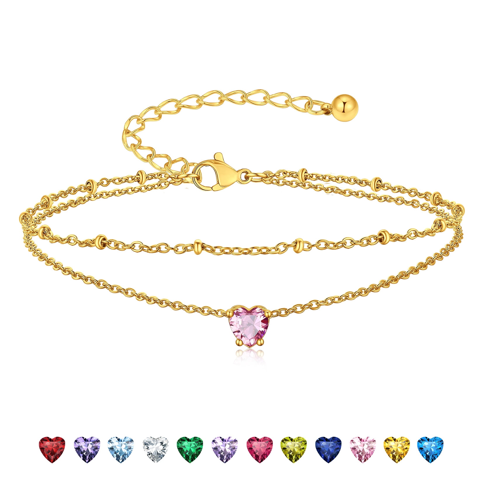 BIRTHSTONE WOMEN ANKLETS -- Dainty minimalist birthstone charm ankle bracelets, simple cute summer jewelry, these women's anklets offer great comfort when worn to parties by the shore.