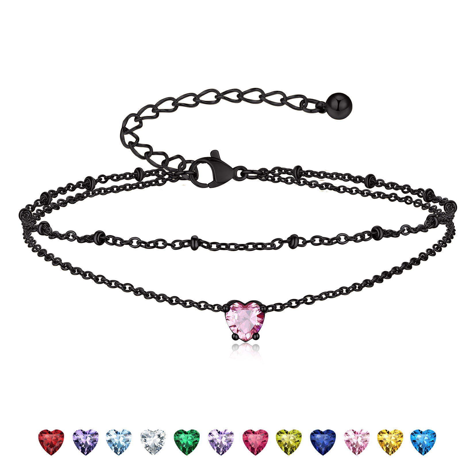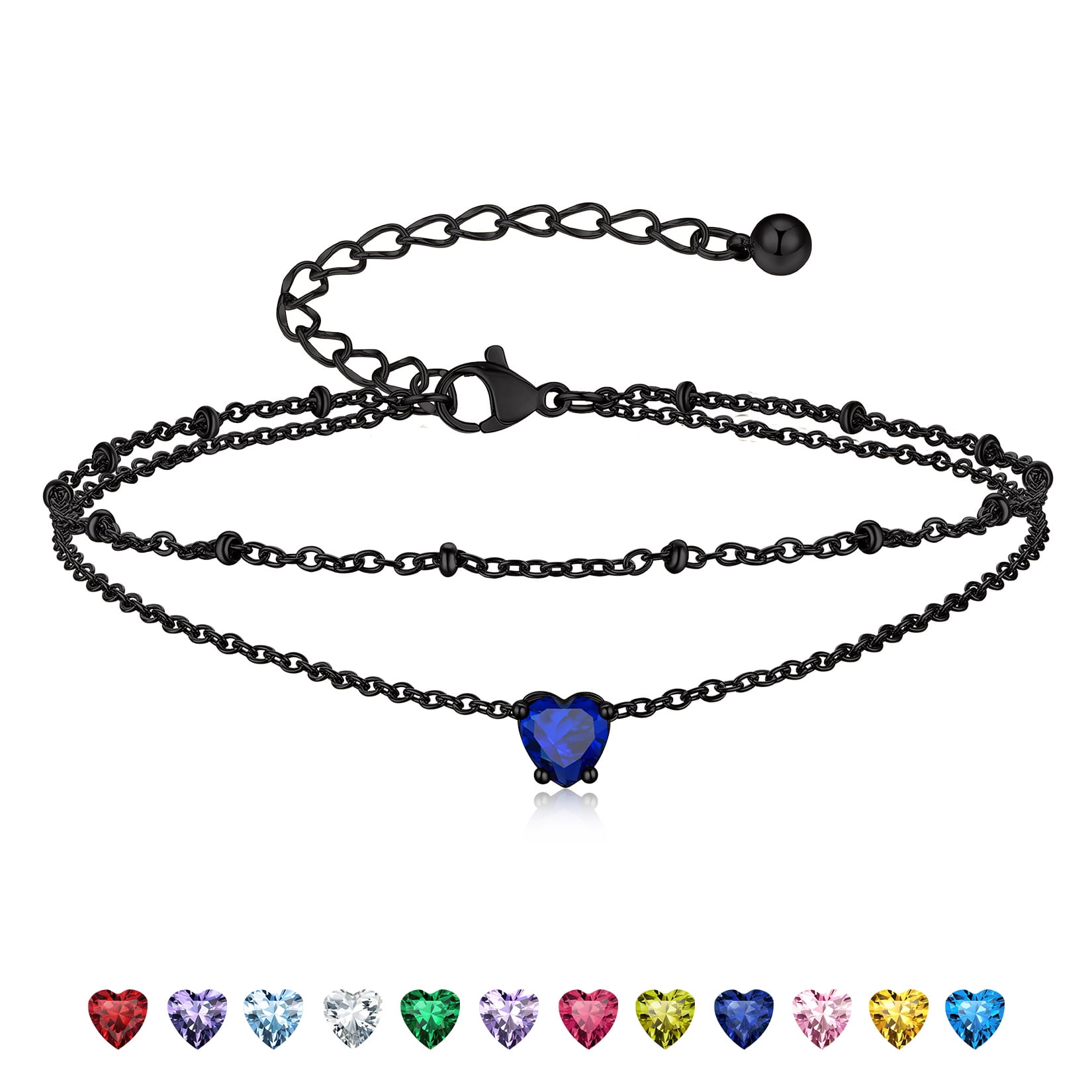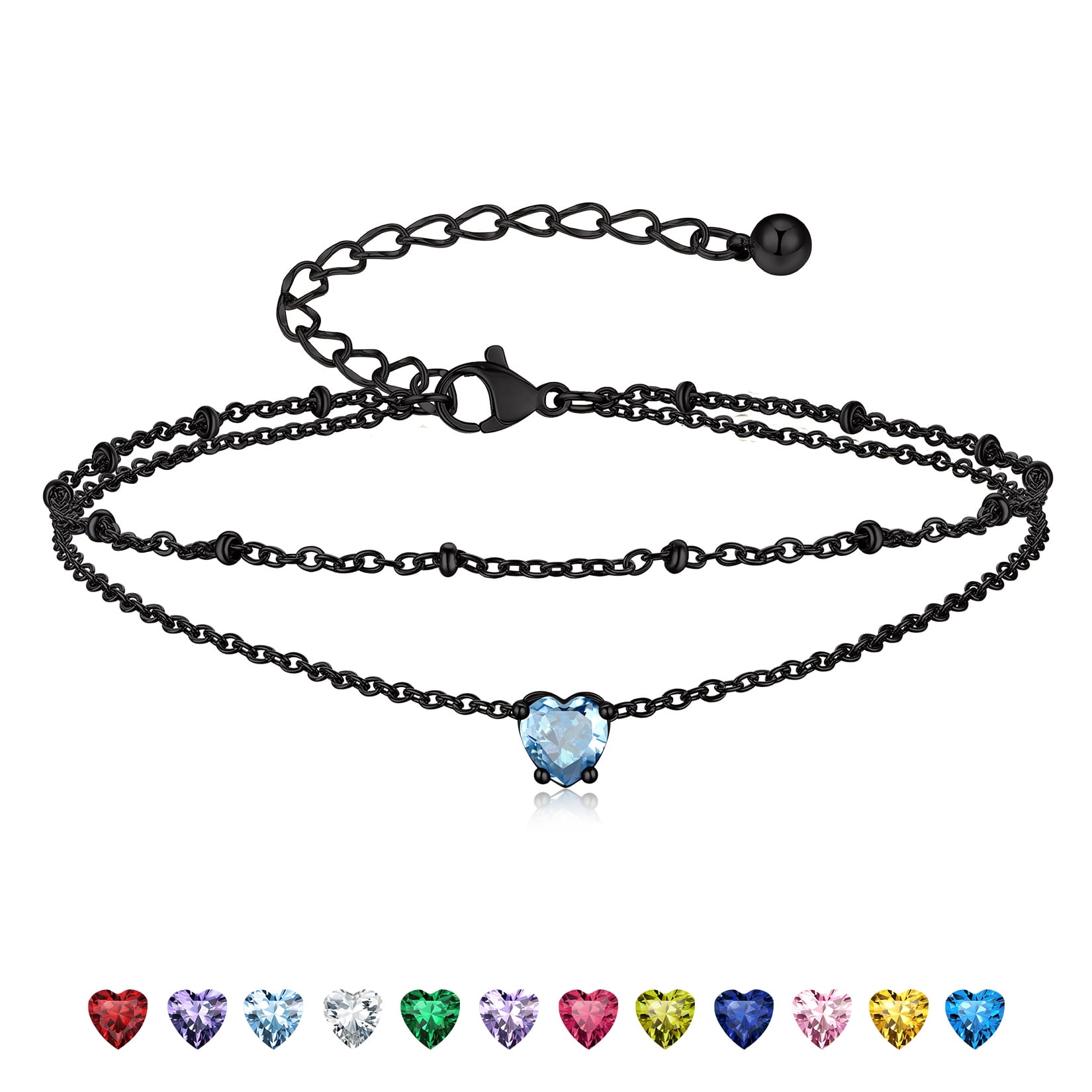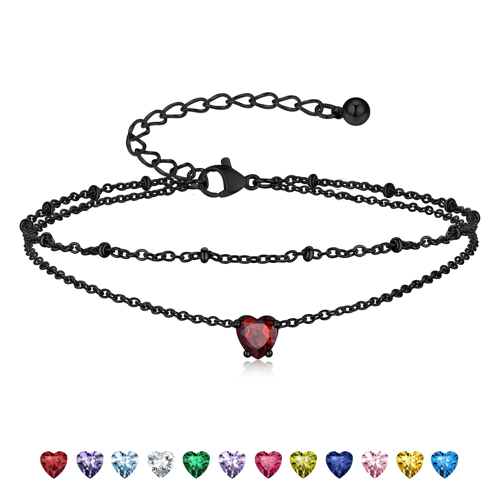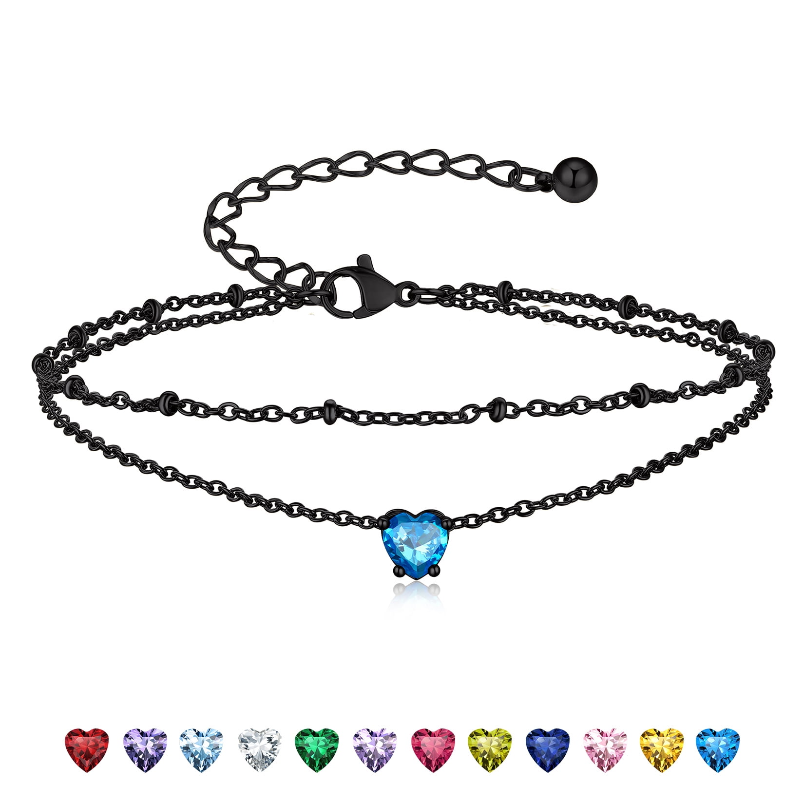 BIRTHSTONE WOMEN ANKLETS -- Dainty minimalist birthstone charm ankle bracelets, simple cute summer jewelry, these women's anklets offer great comfort when worn to parties by the shore.