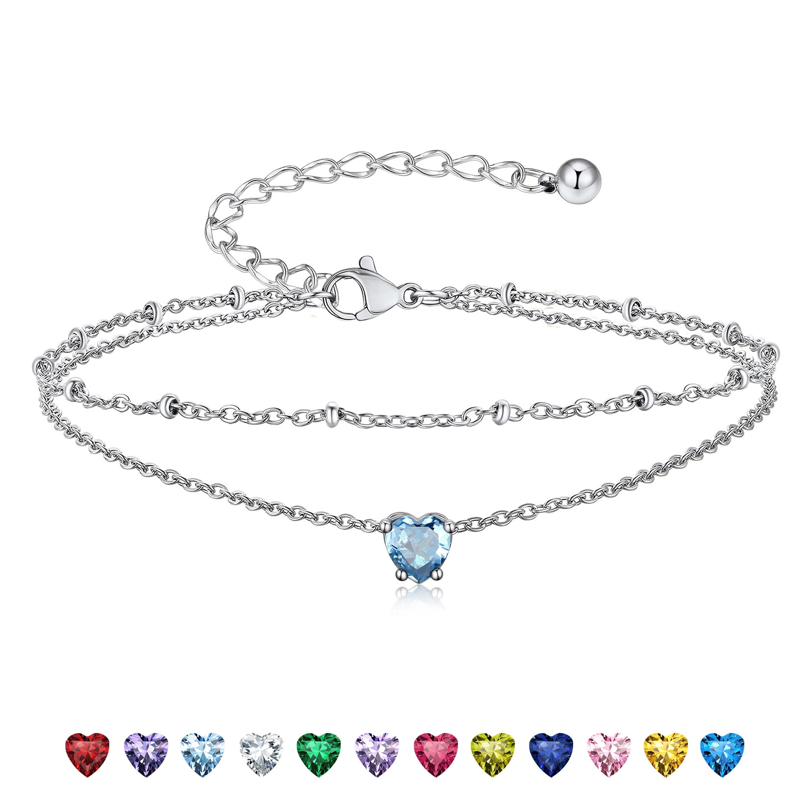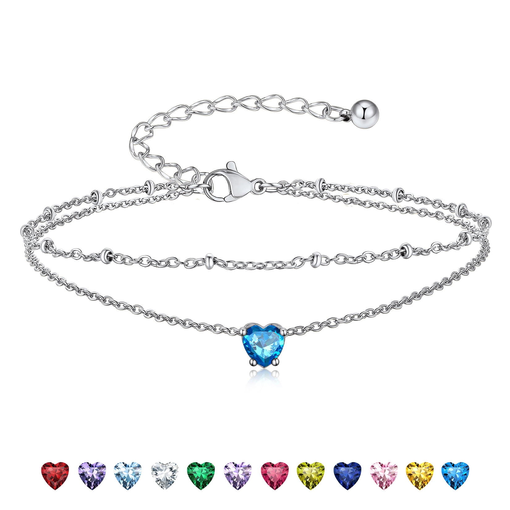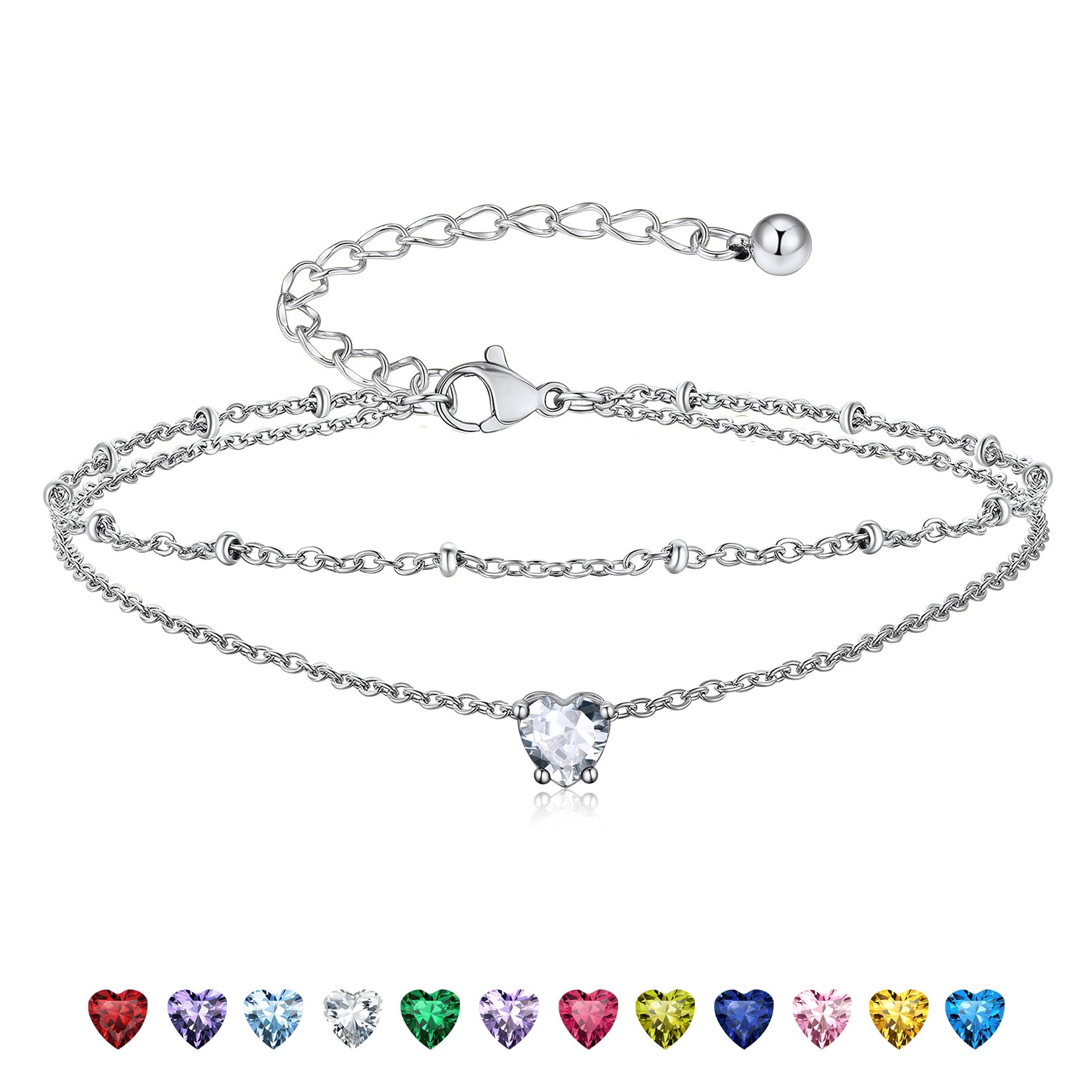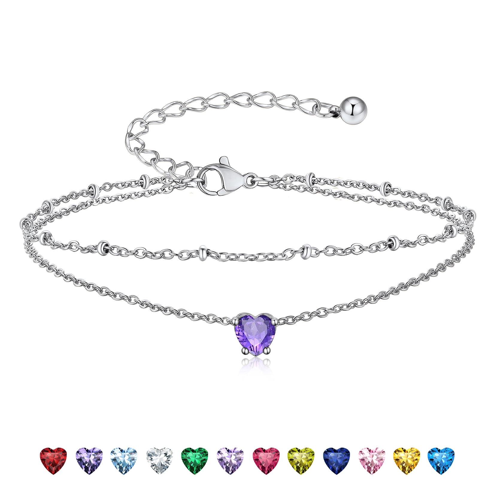 925 STERLING SILVER ANKLETS -- Exquisitely crafted in 925 sterling silver with stamp and set with sparkling cubic zriconia. High quality round birthstone anklet bright and shine. Never fade, no harm to skin, comfortable to wear.