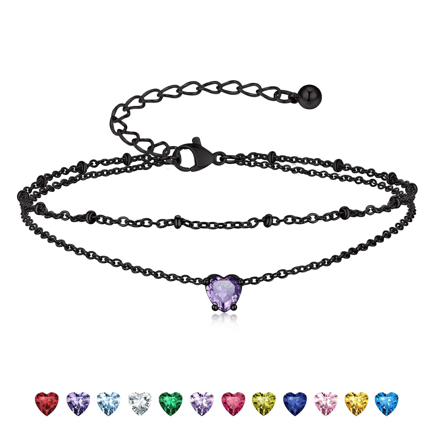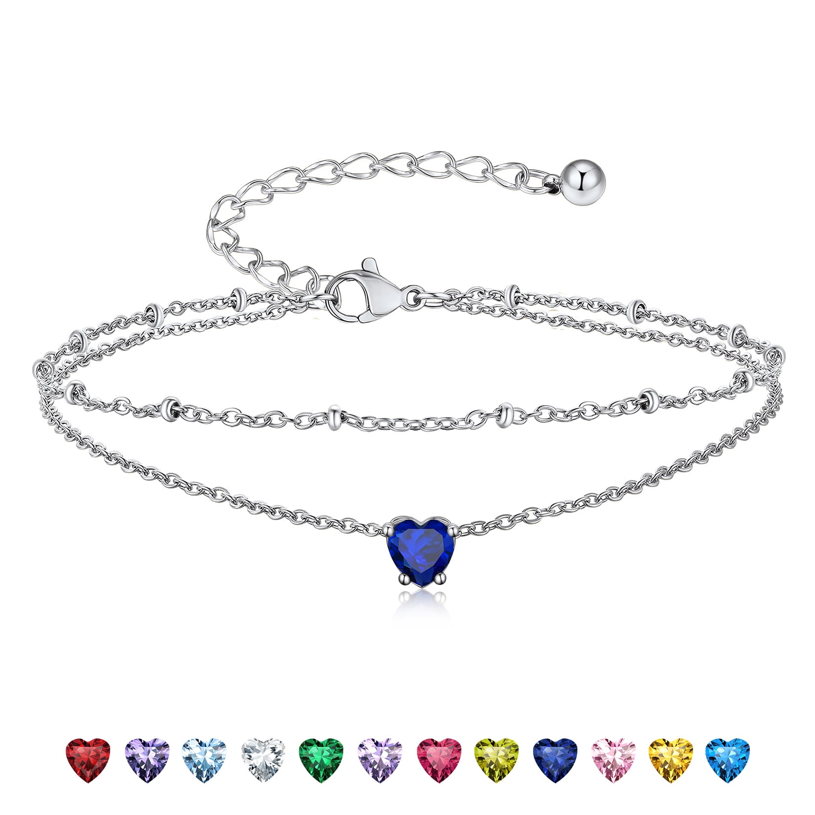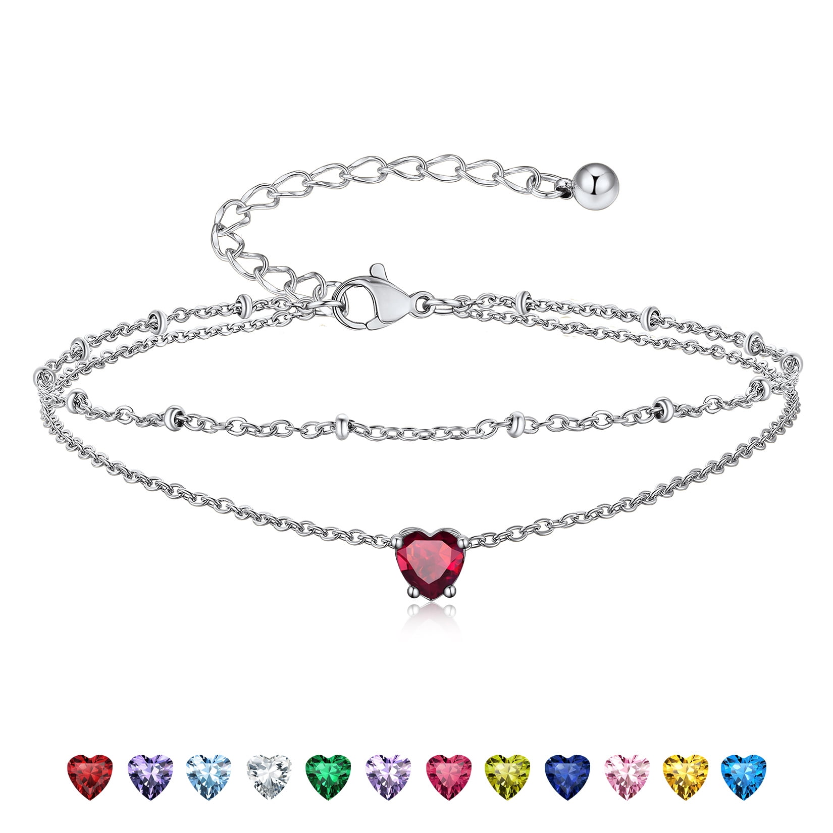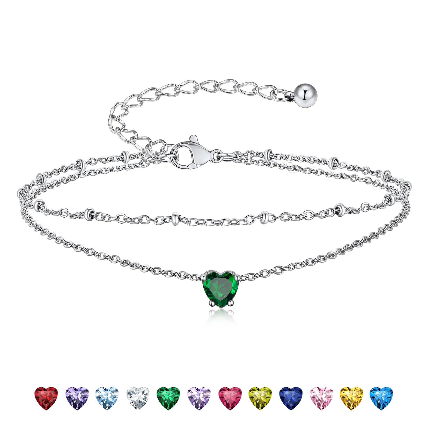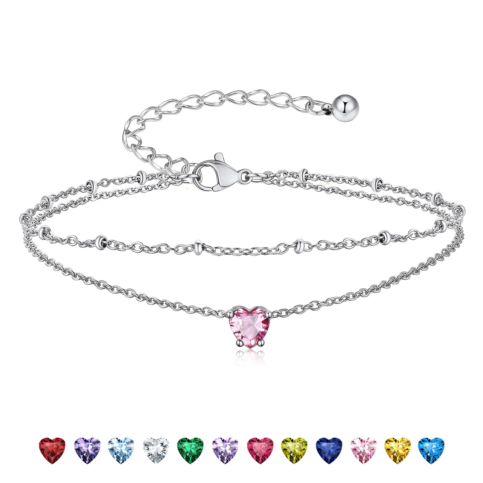 925 STERLING SILVER ANKLETS -- Exquisitely crafted in 925 sterling silver with stamp and set with sparkling cubic zriconia. High quality round birthstone anklet bright and shine. Never fade, no harm to skin, comfortable to wear.