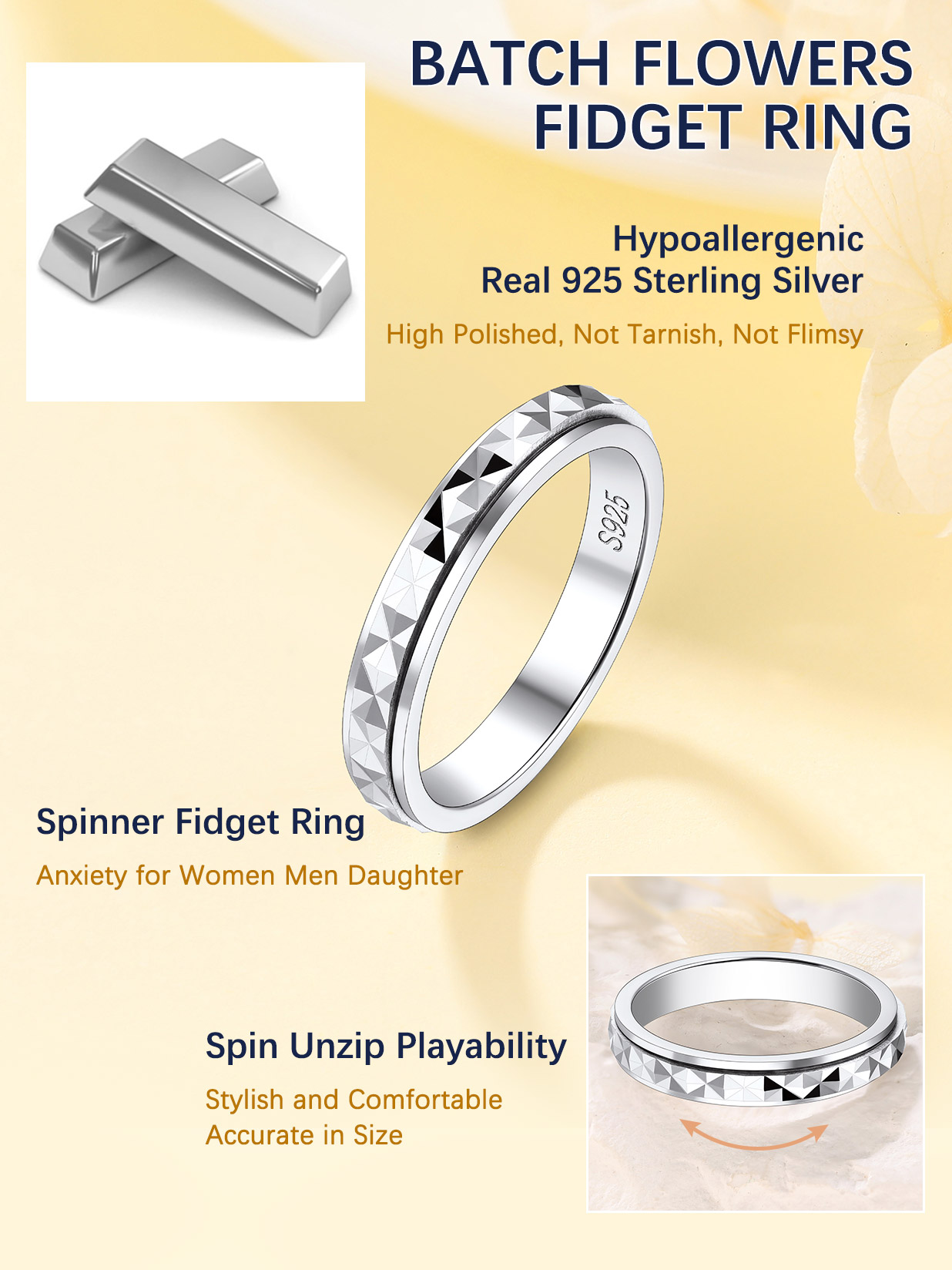 REAL 925 STERLING SILVER -- Crafted of pure 925 sterling silver to give your jewelry a brilliant shine. Sterling silver is hypoallergenic and nickel-free making this a great choice for those with very sensitive skin.