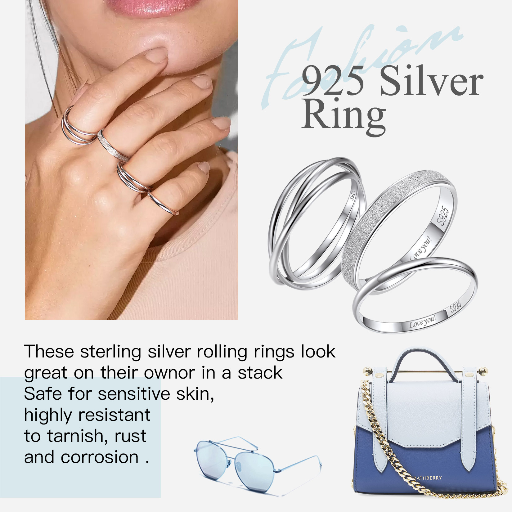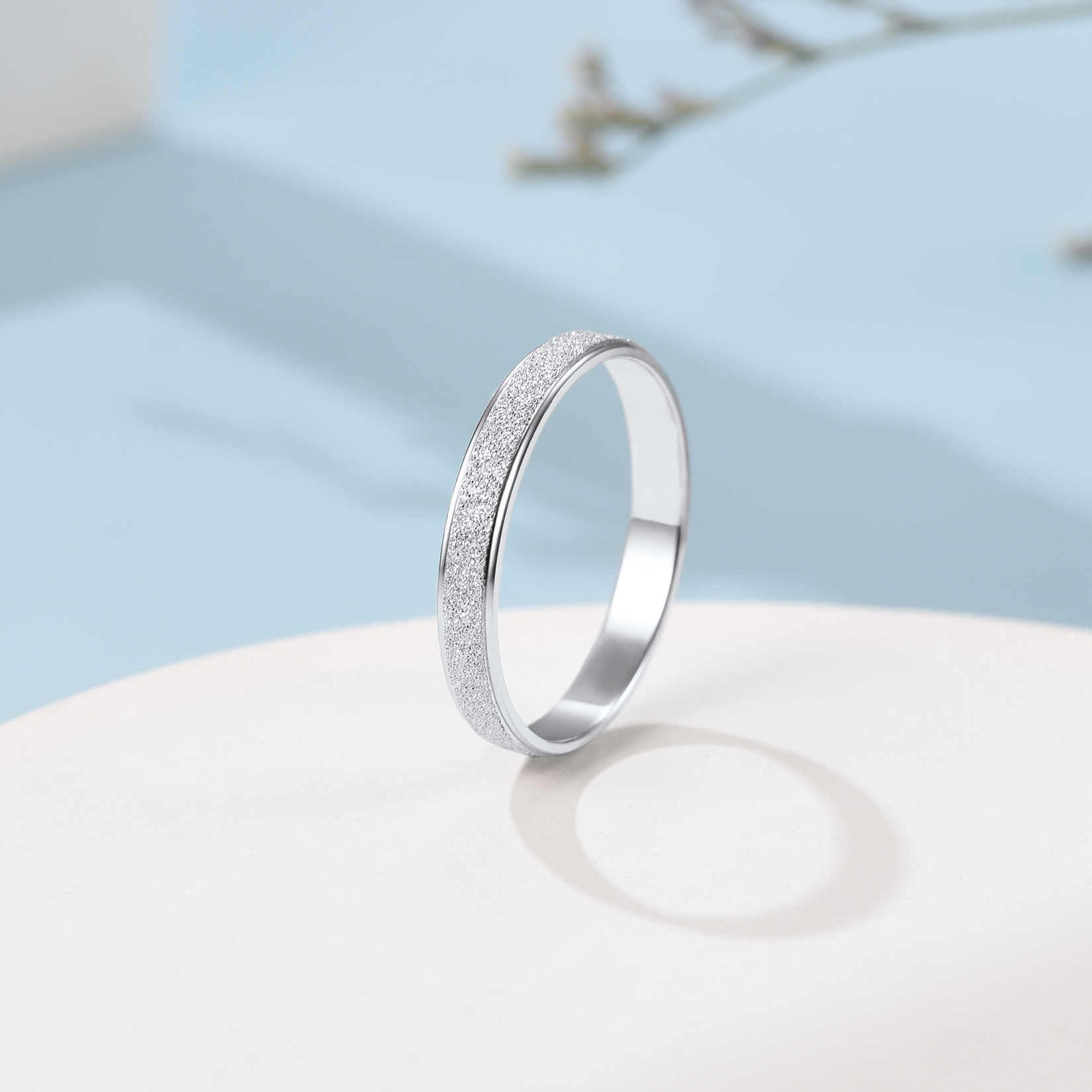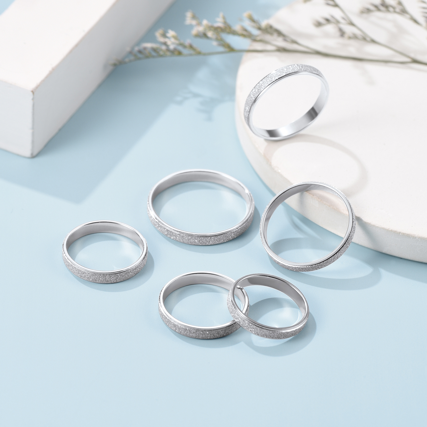 Suplight 925 Sterling Silver Rings 3mm Simple Plain Stardust Band Rings for Women Men