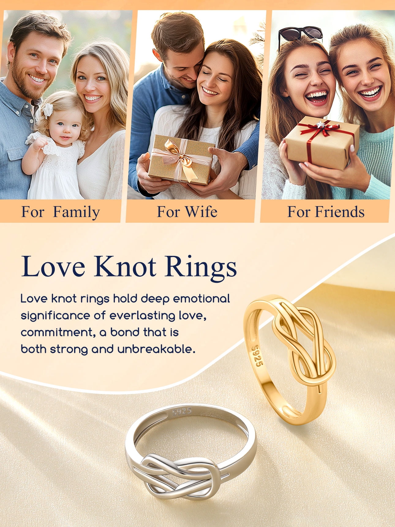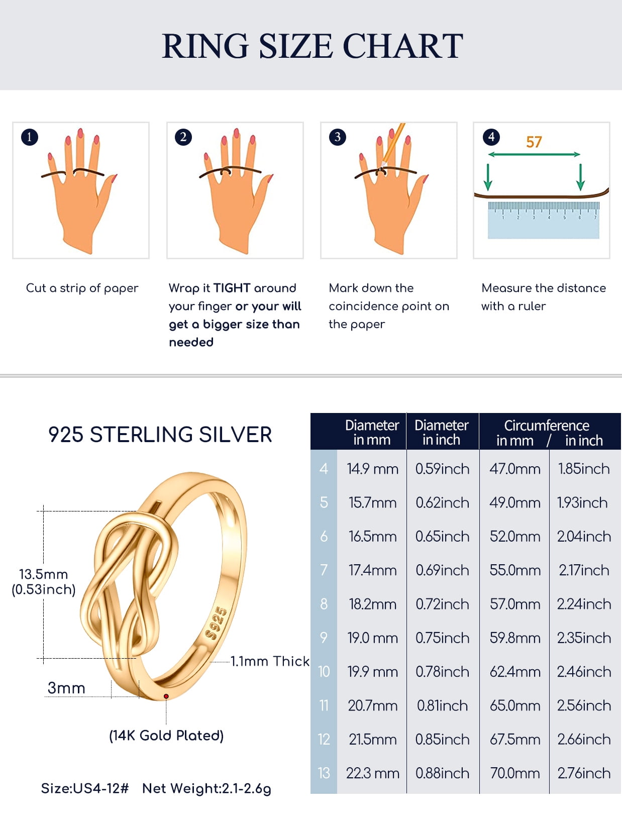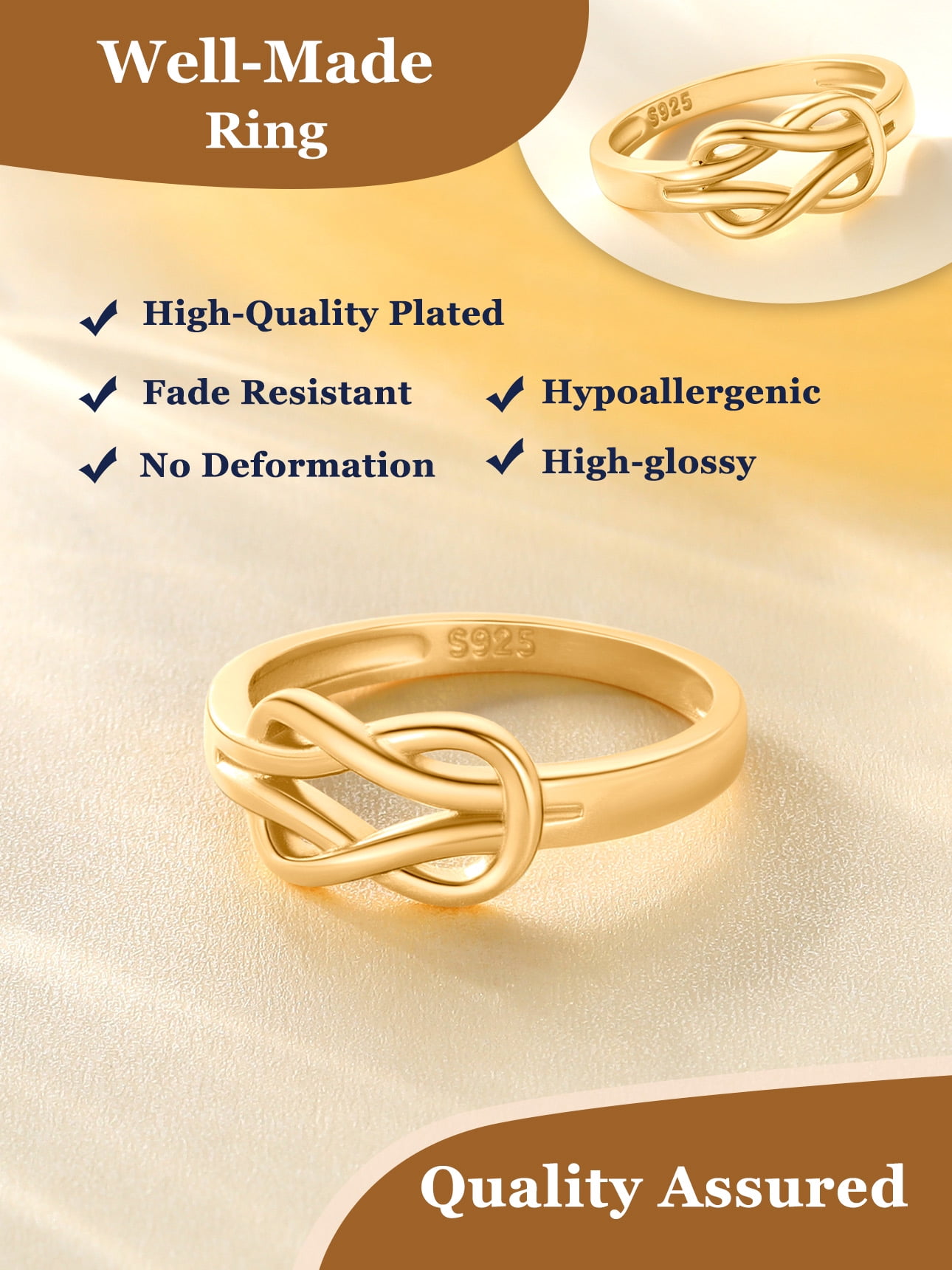 HIGH-TECH WOMEN SILVER RINGS -- The sterling silver knot ring is made of 925 sterling silver, with surface electroplated with white gold so that it is not easy to oxidize under any circumstance. Excellent electroplating process makes it a good antioxidant effect to increase the service life. Besides various sizes of silver rings to meet with different needs.