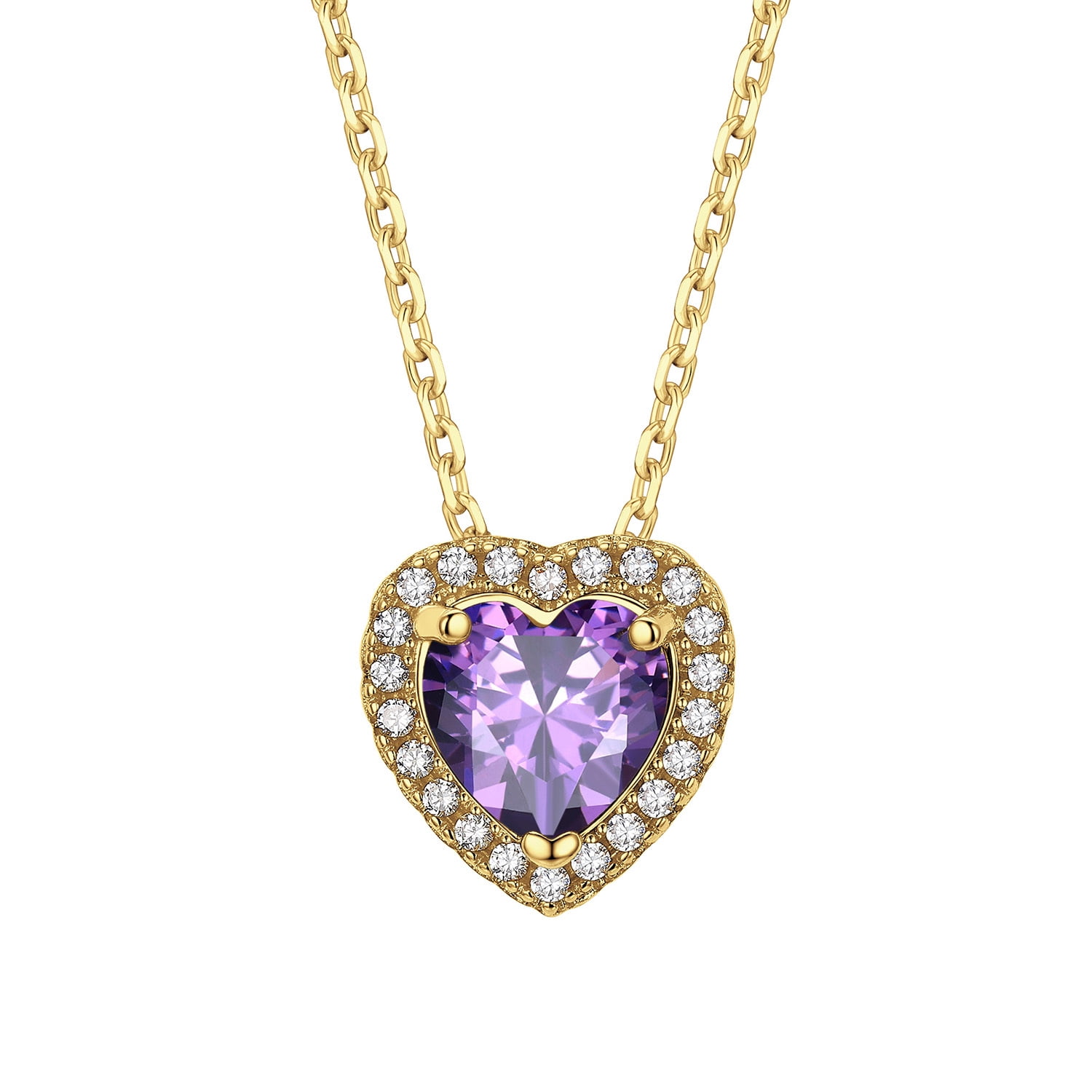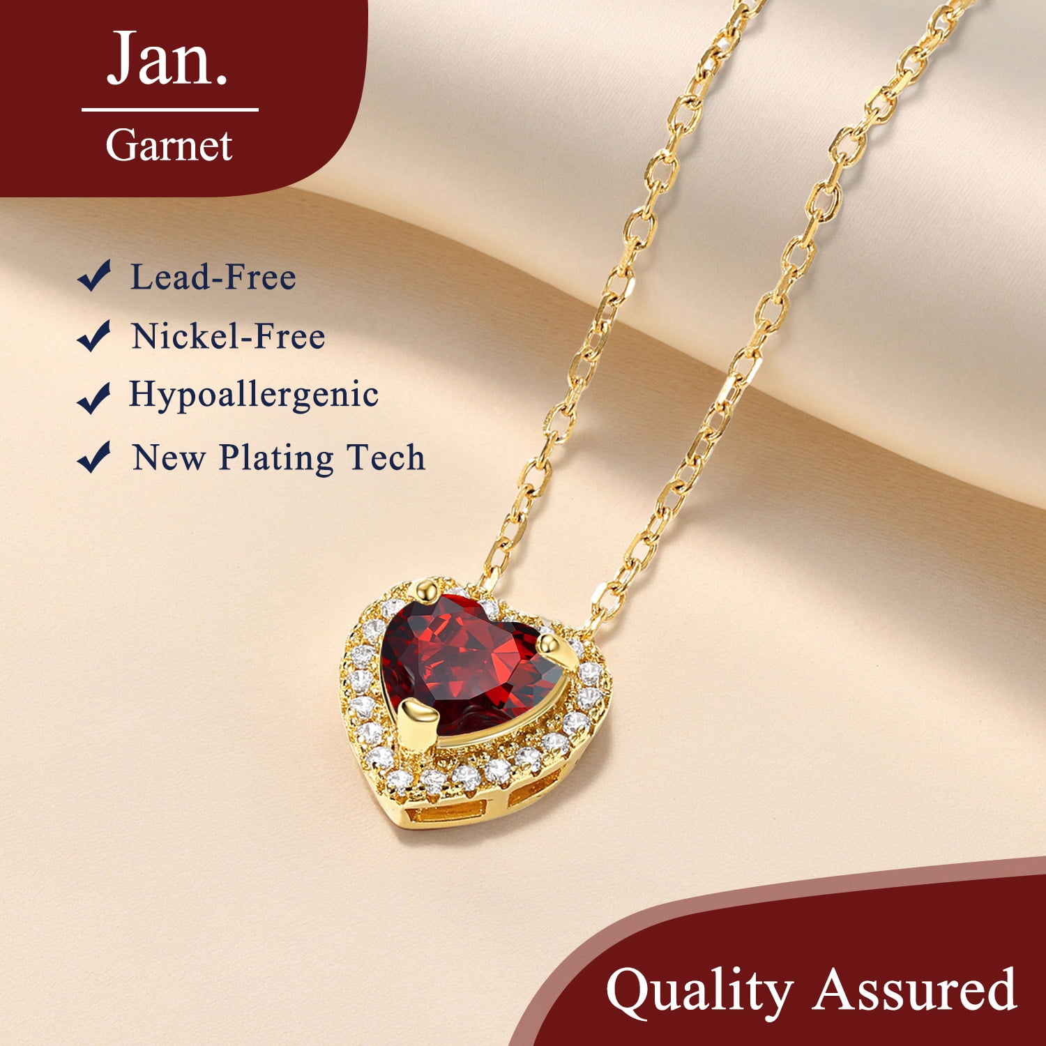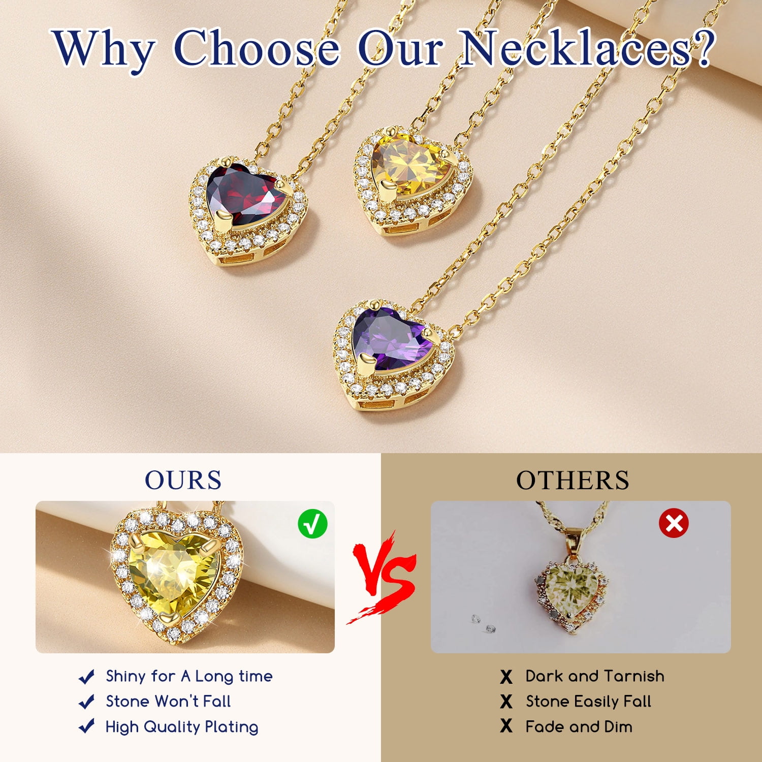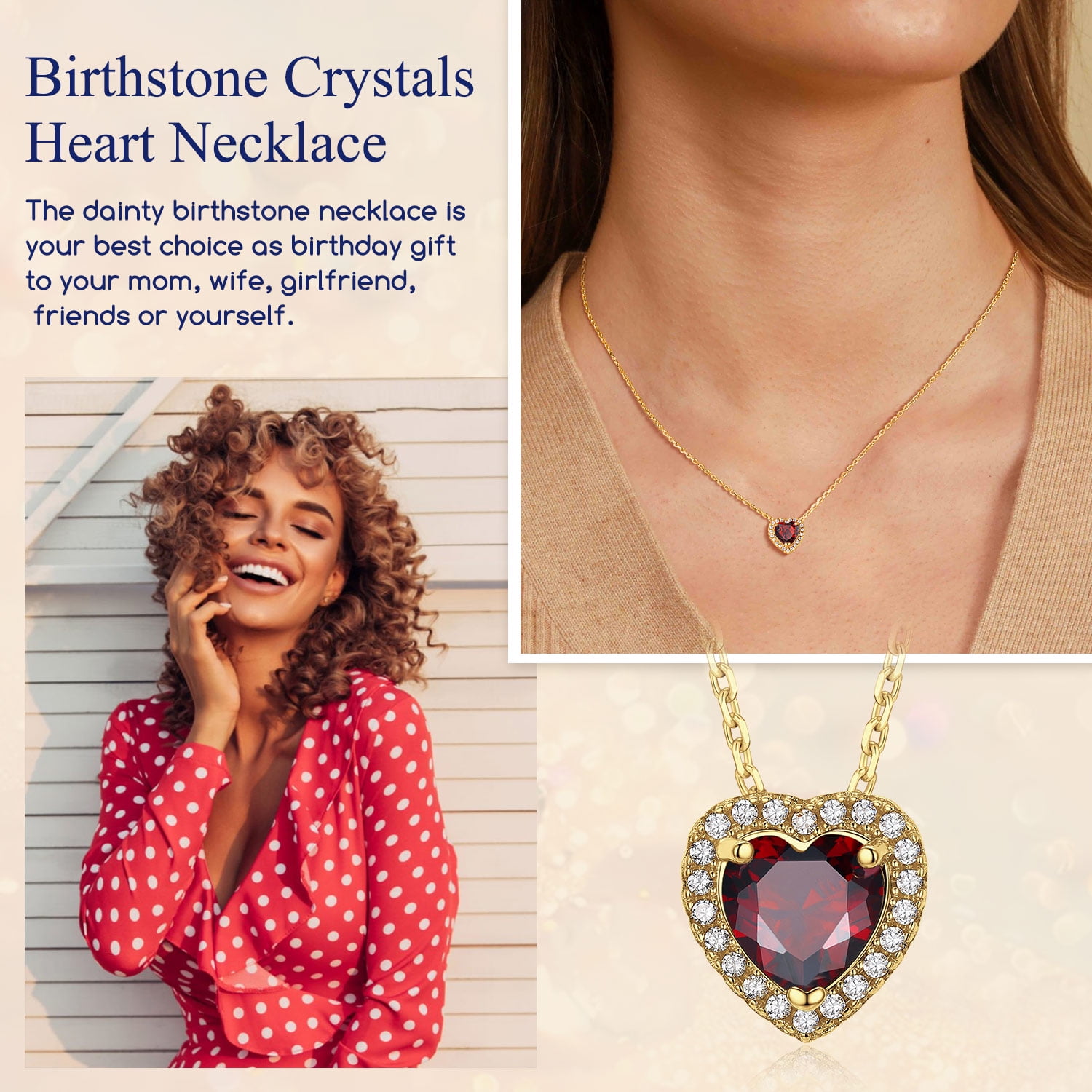 WOMEN HEART NECKLACE -- Solid gold plated birthstone heart neckalce for women, with outer small zircons and 16"+ 2" extender sturdy cable chain. Very delicate and pretty, comfortable to wear.