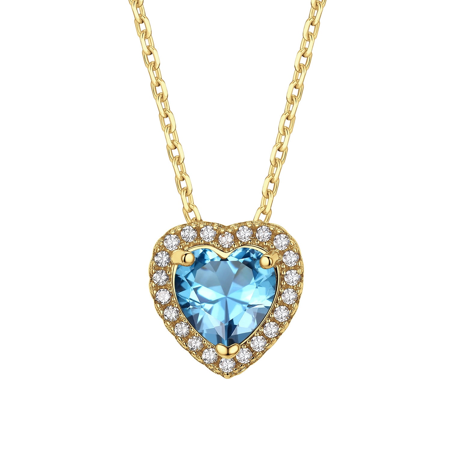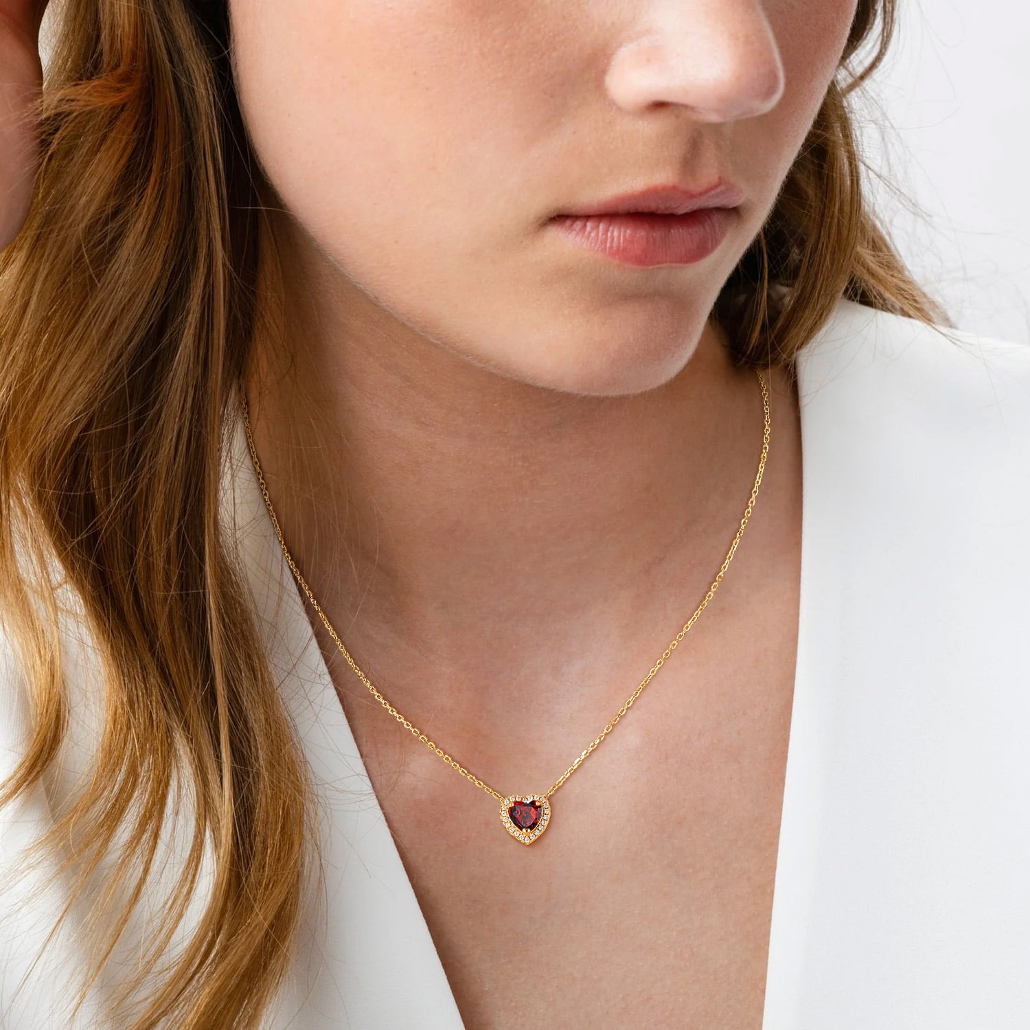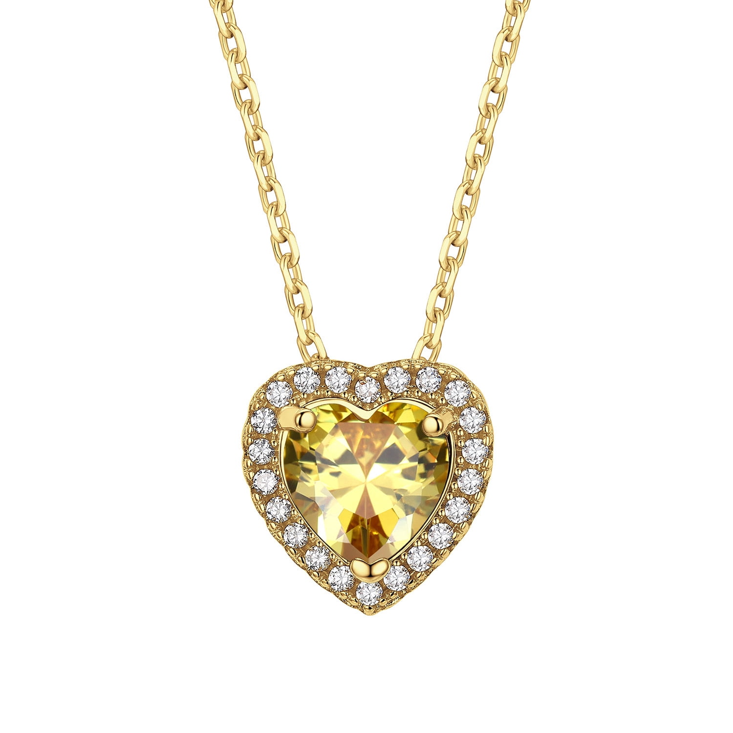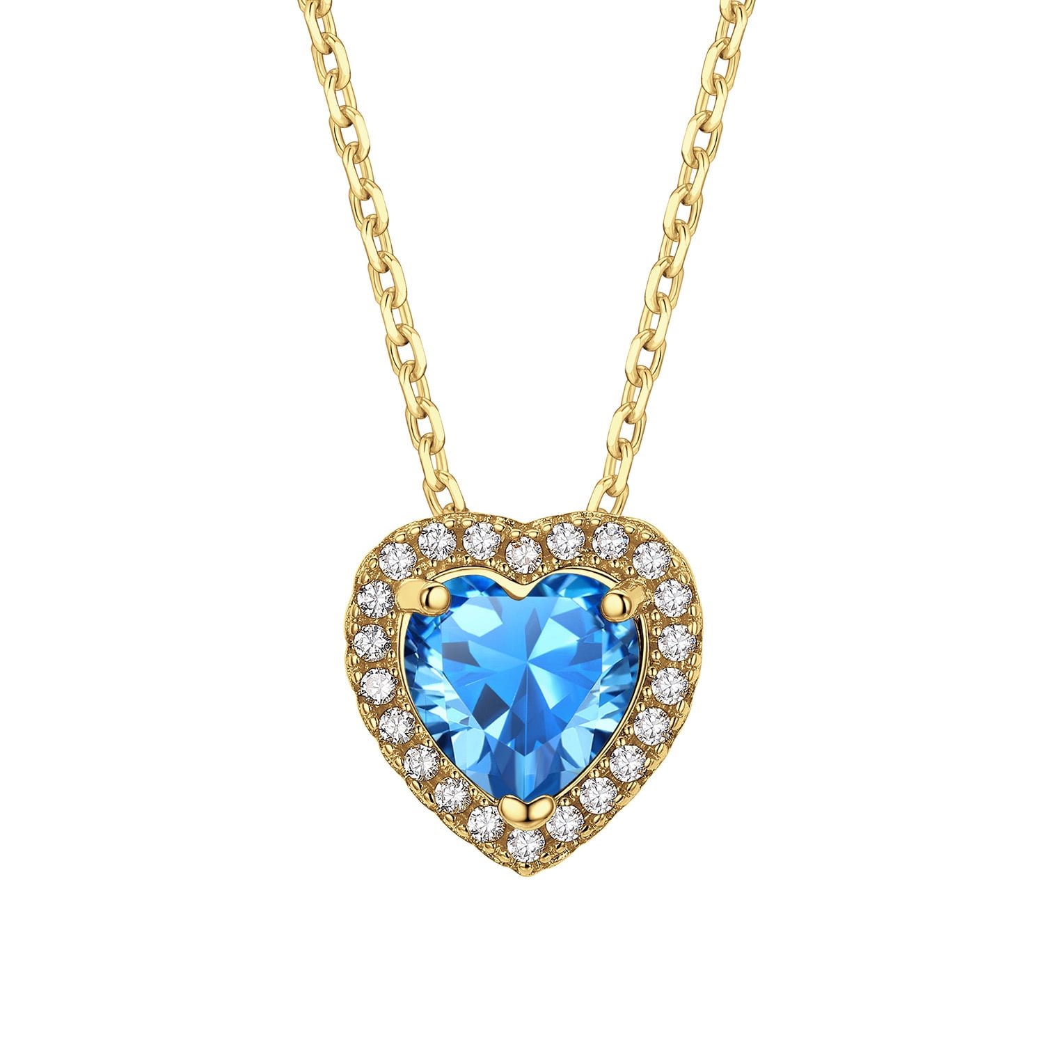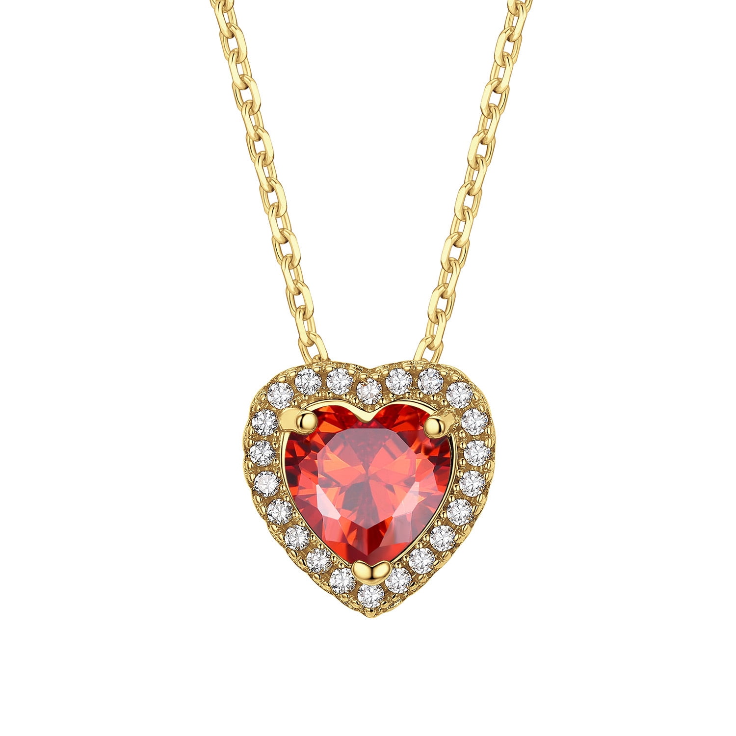 WOMEN HEART NECKLACE -- Solid gold plated birthstone heart neckalce for women, with outer small zircons and 16"+ 2" extender sturdy cable chain. Very delicate and pretty, comfortable to wear.