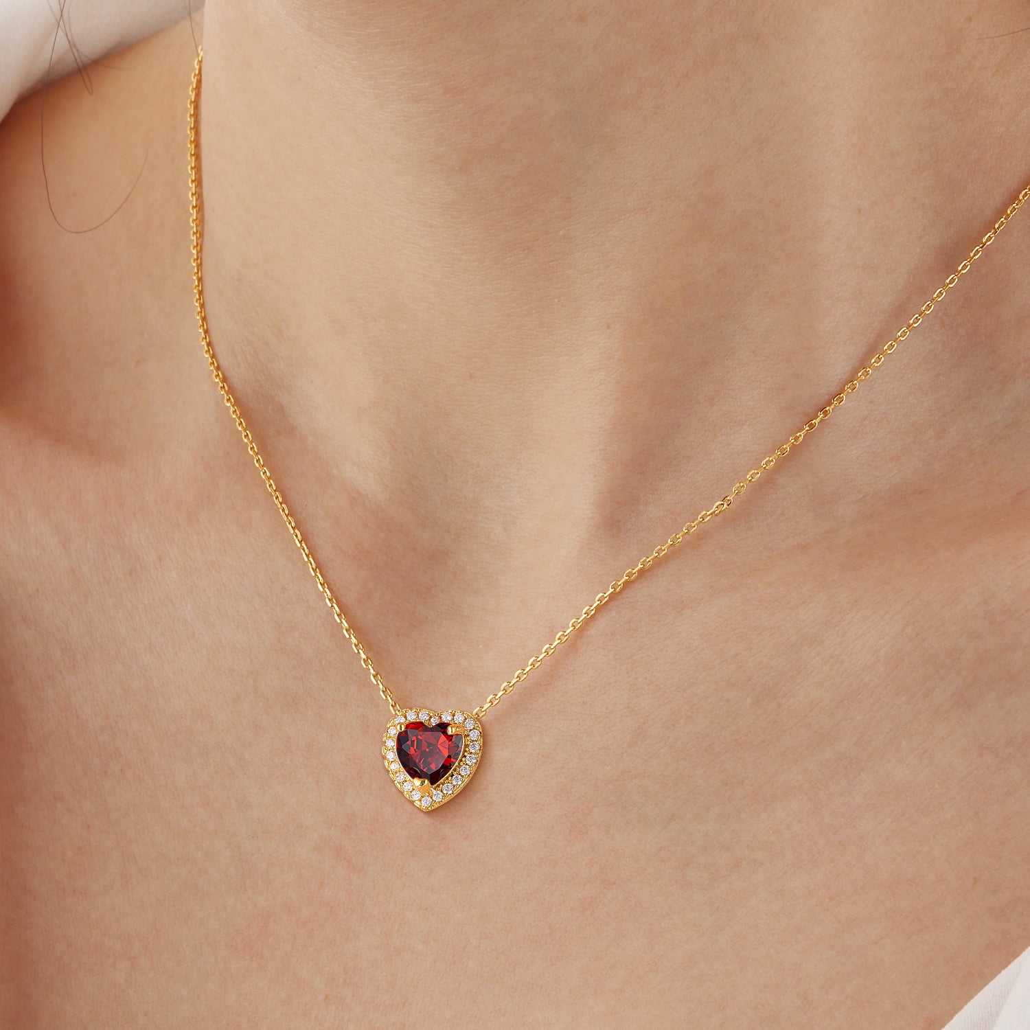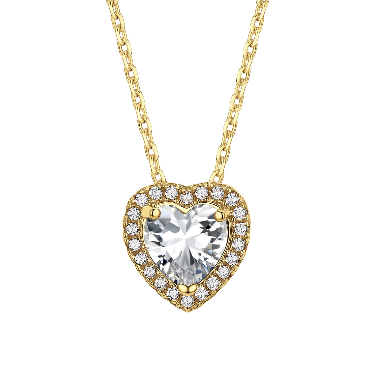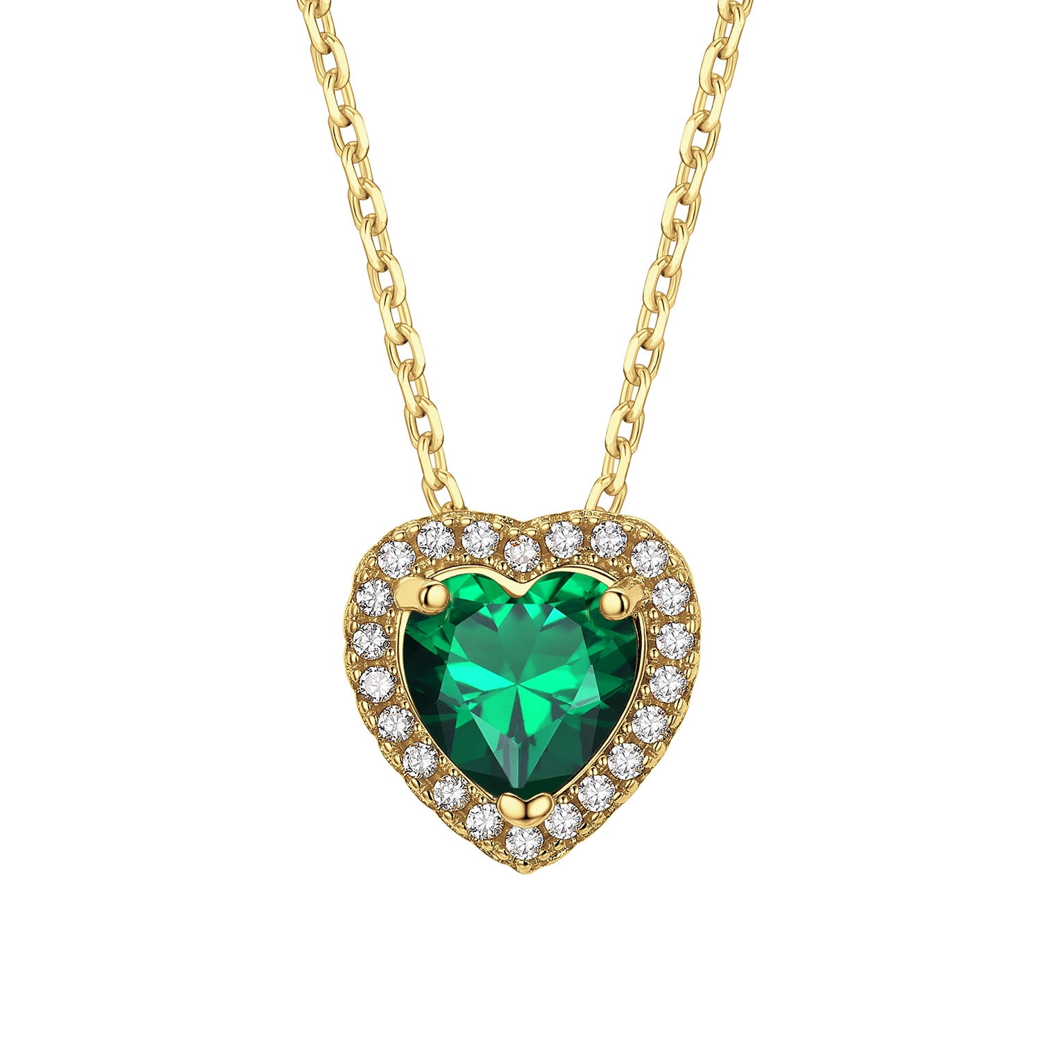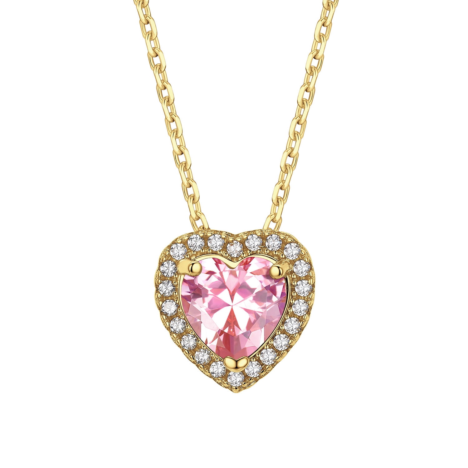 WOMEN HEART NECKLACE -- Solid gold plated birthstone heart neckalce for women, with outer small zircons and 16"+ 2" extender sturdy cable chain. Very delicate and pretty, comfortable to wear.